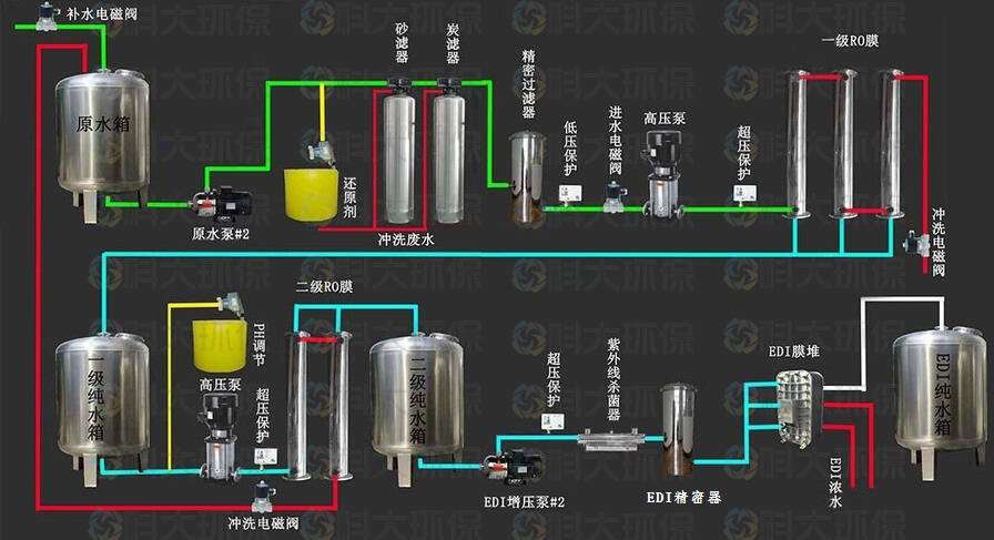 電阻率≥15MΩ·cm(常溫下25°C)預處理+二級RO+edi裝置