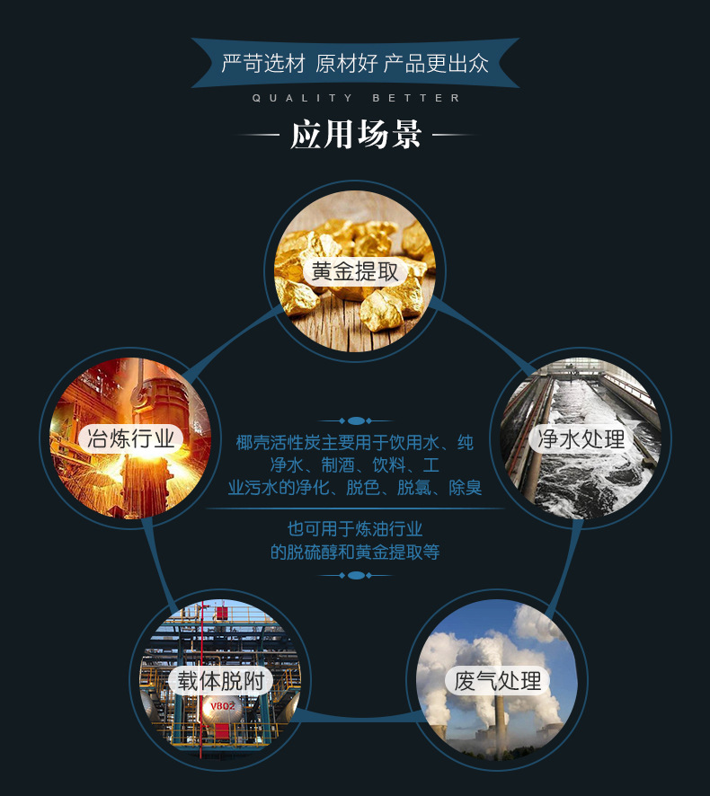 產(chǎn)品主要用于飲用水、純凈水、制酒、飲料、工業(yè)污水的凈化、脫色、脫氯、除臭;也可用于煉油行業(yè)的脫硫醇等。