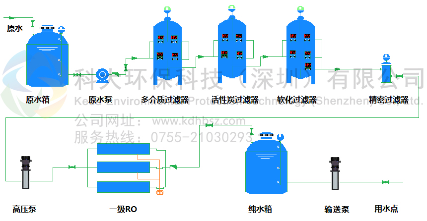 電導率≤10µS/cm (常溫下25°C) 預處理+一級反滲透(RO)