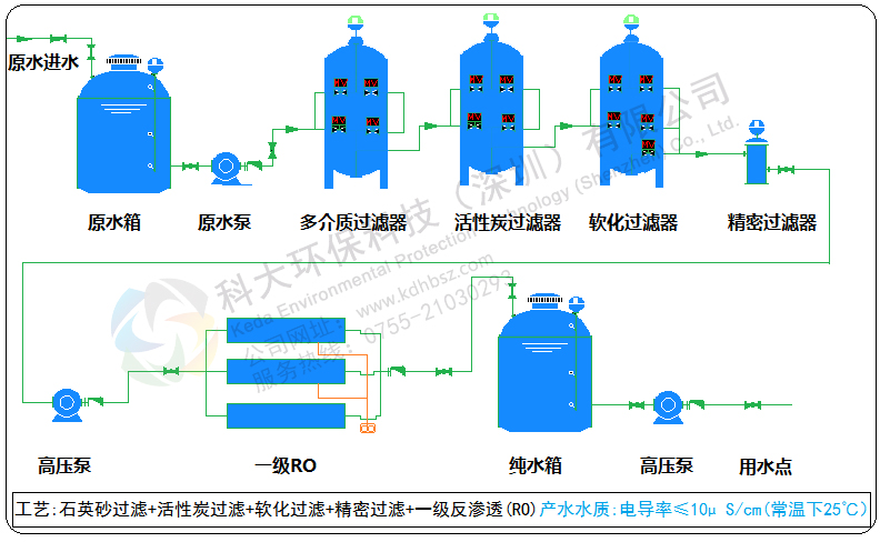 三、科大環(huán)保_一級反滲透純水設(shè)備設(shè)計(jì)工藝: